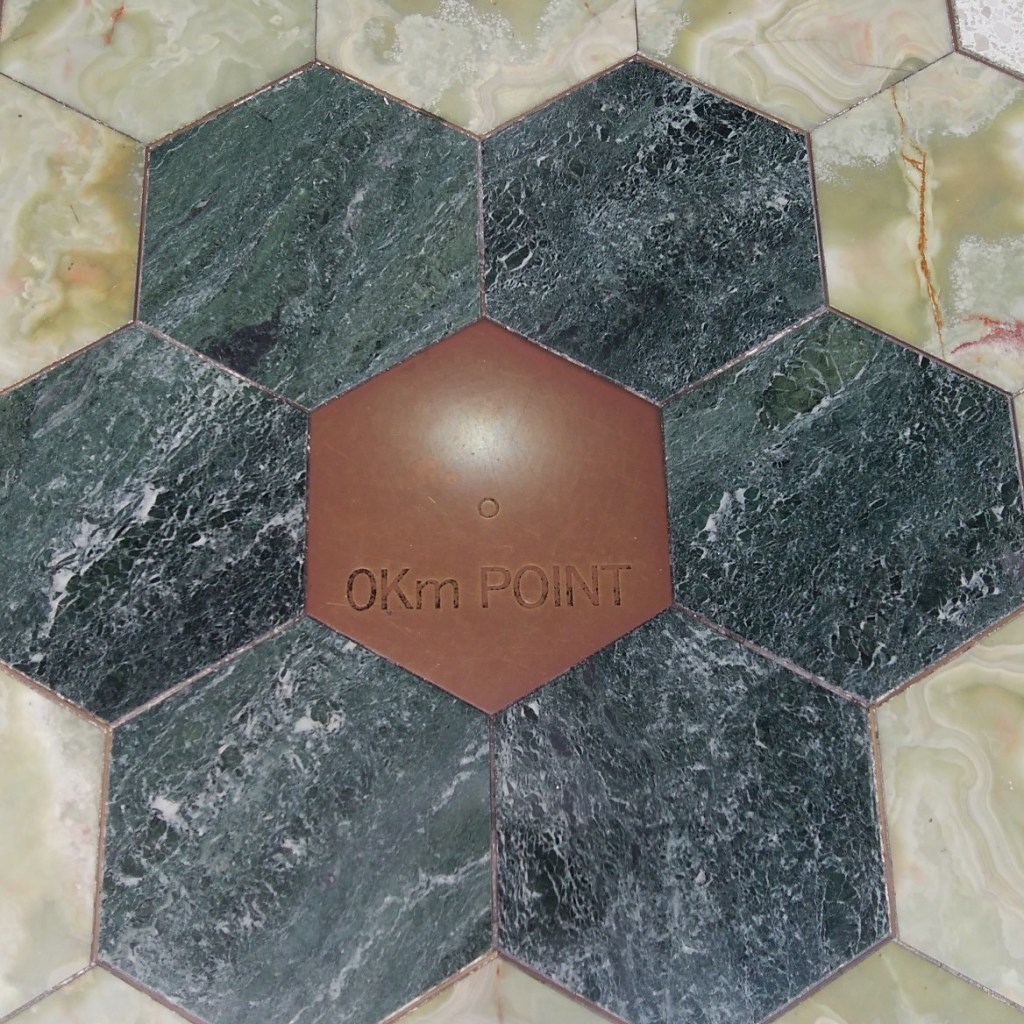 この幾何学的な模様は東京駅の新幹線ホームに置かれており、気をつけてみると0Kmと彫られています。新幹線の走行距離の起算点のシンボルのようです。私はこれを勝手に出発点を表すものとしてアイコンにさせていただくことにしました。