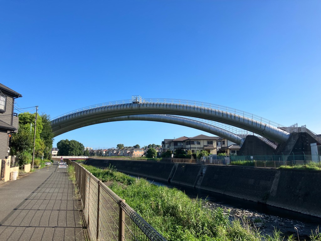 変わった光景としてこれまで何度も紹介してきた水管橋がある。道志川と相模湖の水を東京に送る設備だ。川の上を他の川の水が渡る不思議な風景である。