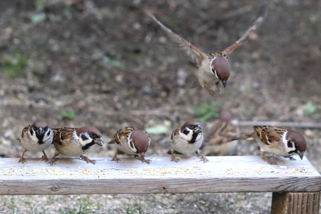 鳥に詳しい方の書籍やサイトによると、都市部のスズメの減少は大変顕著な現象のようだ。その原因として営巣場所が現在の建築物では確保しにくいこと、耕作地の減少で昆虫などの餌の確保が難しいこと、騒音や排気ガスなどの与えるストレスが繁殖力に影響を及ぼしていることなどが挙げられている。おそらく、そのいくつかの原因が相関しているのだろう。